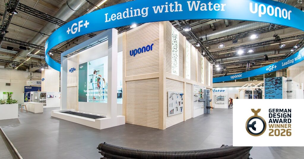In addition to the product award, GF also received a German Design Award for its trade fair booth at ISH 2025, built together with M+W Gruppe, Brands and Emotions GmbH, and architect Axel Loritz from imageneering GmbH. This recognition reflects the company’s commitment to customer-centricity in all aspects of its work and its mission to create energy-efficient, affordable buildings with clean and safe drinking water, as well as comfortable spaces. Built with sustainability in mind, the booth concept ensured that displays and materials can be reused repeatedly. Meanwhile, the Digital Twin – the virtual ISH presentation – offers a virtual stand experience and sales training extending the fair. The jury’s statement: “…This strong interplay of architectural clarity and resource-conscious execution impresses at the highest level and sets new standards for sustainable design in temporary spaces.”